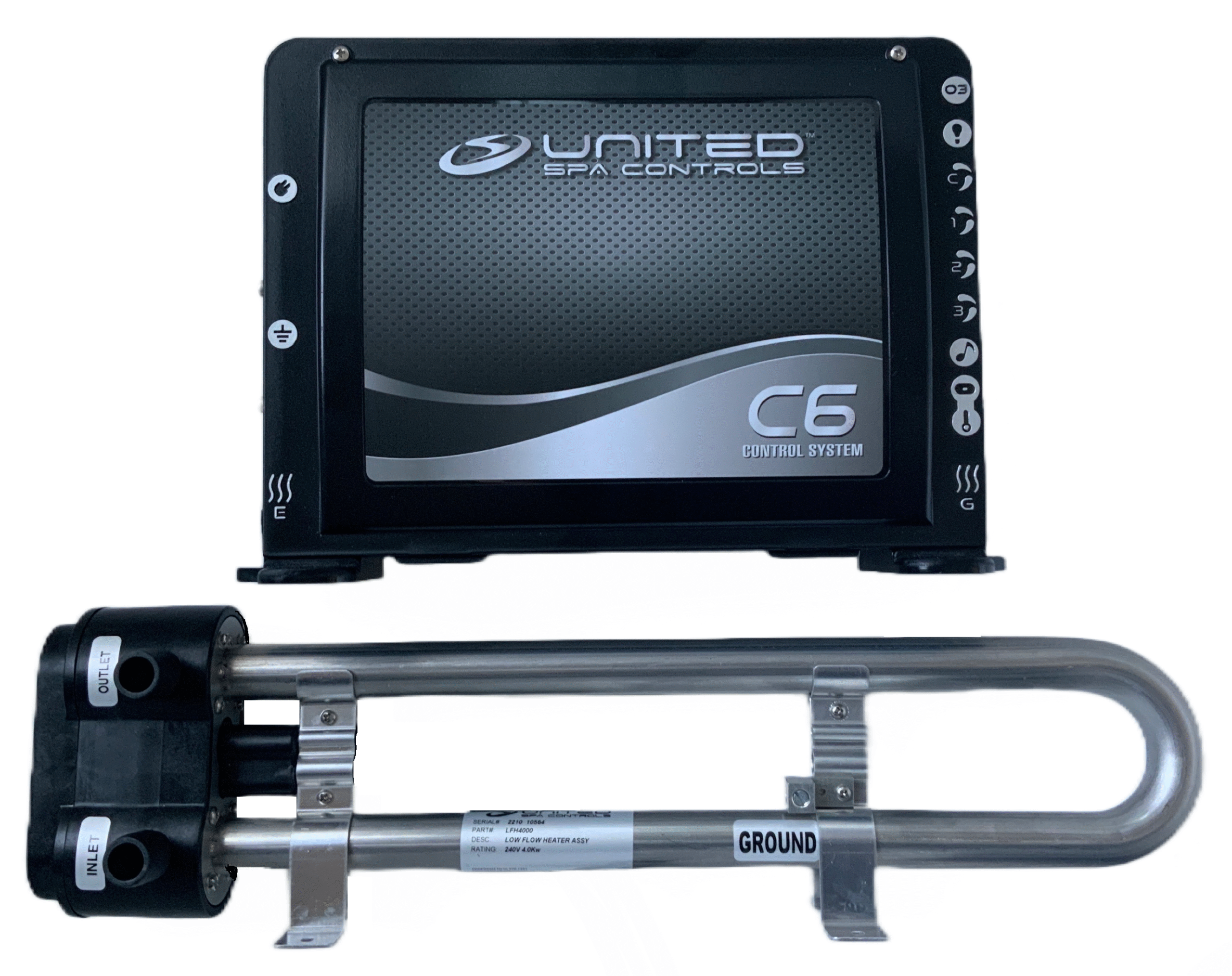 United Spa Controls – Complete system with 2” Heater in the bottom and T7S Topside